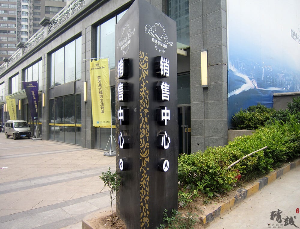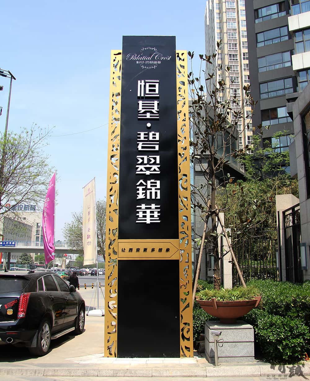 我們生活中常見的導(dǎo)視牌又名指示牌、導(dǎo)向標牌、索引牌,是起到導(dǎo)視、指示、公示作用的廣告標牌。以下是我們公司(陜西精誠展覽裝飾有限公司)為恒基碧翠錦華設(shè)計的導(dǎo)視牌實景展示,可供參考:
