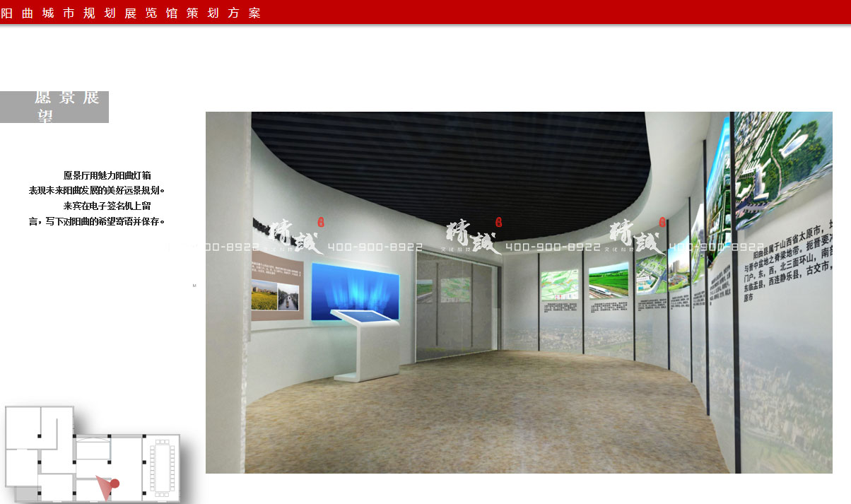 愿景展望:愿景廳用魅力陽曲燈箱表現(xiàn)未來陽曲發(fā)展的美好遠景規(guī)劃。