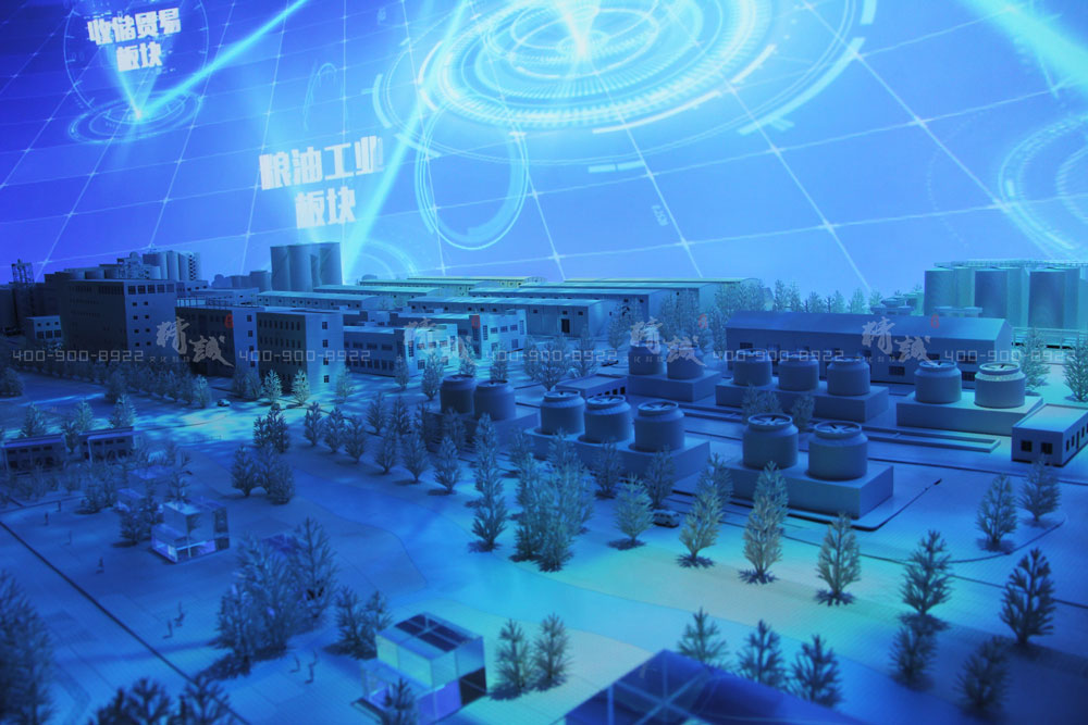 利用數(shù)字投影升級沙盤,配合弧幕投影,以聲光電聯(lián)動的效果播放糧農(nóng)集團宣傳片,給觀者以強烈的視覺震撼。