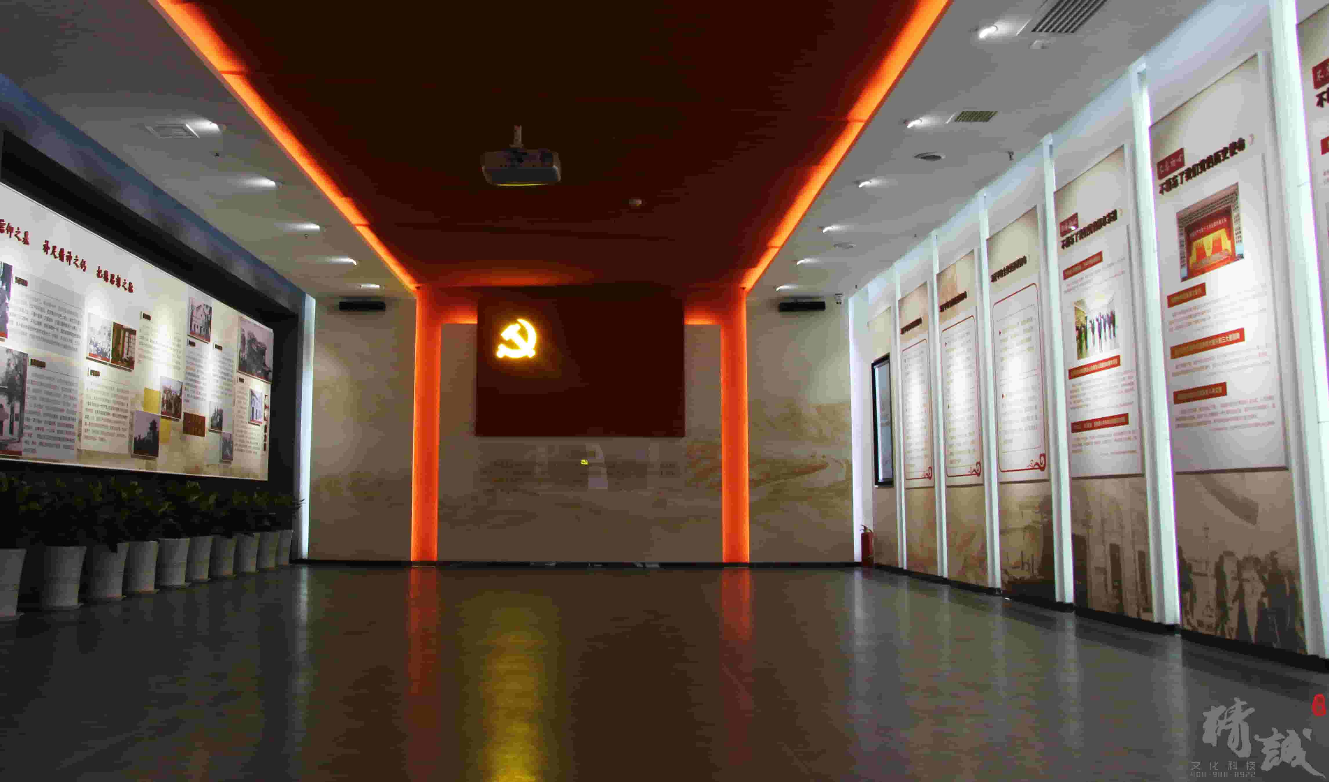 墻面展板以時(shí)間線(xiàn)為延伸,通過(guò)圖文展示中國(guó)共產(chǎn)黨精神譜系和光輝歷程、西安黨組織發(fā)展史、蓮湖紅色革命遺址等內(nèi)容。再現(xiàn)我黨波瀾壯闊的發(fā)展史,以及西安作為西北革命根據(jù)地的前沿陣地,在近代革命中擎起的千里之任。