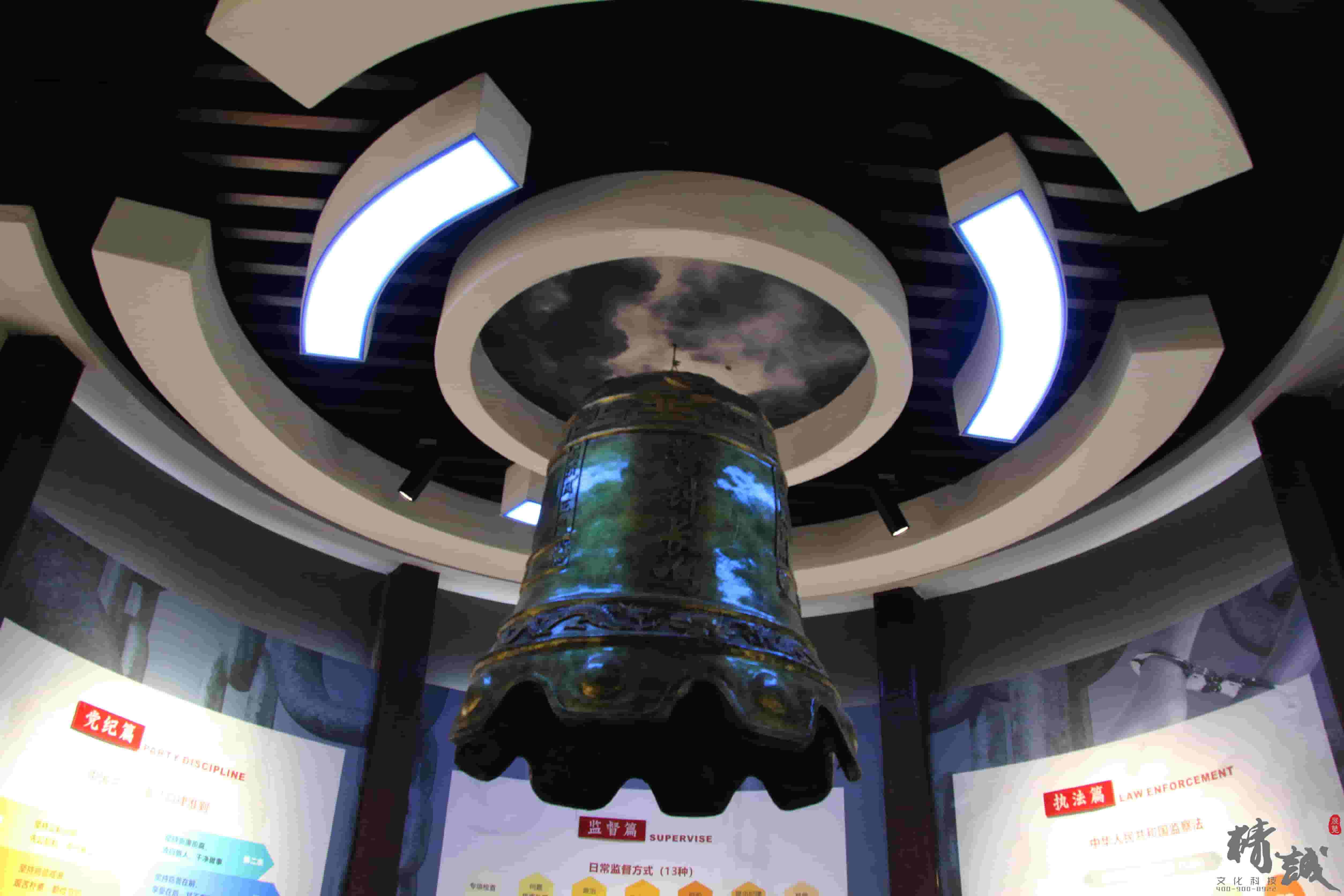 配合廉政警示教育,采用鐵絲網(wǎng)造型墻和吊頂警鐘設(shè)計(jì),展示中央紀(jì)檢監(jiān)察機(jī)構(gòu)歷史沿革、蓮湖紀(jì)檢監(jiān)察機(jī)構(gòu)歷史沿革以及十八大以來(lái)中省市區(qū)反面典型案例,從視覺(jué)感官層面引導(dǎo)廣大黨員干部自警自省,自重自律。