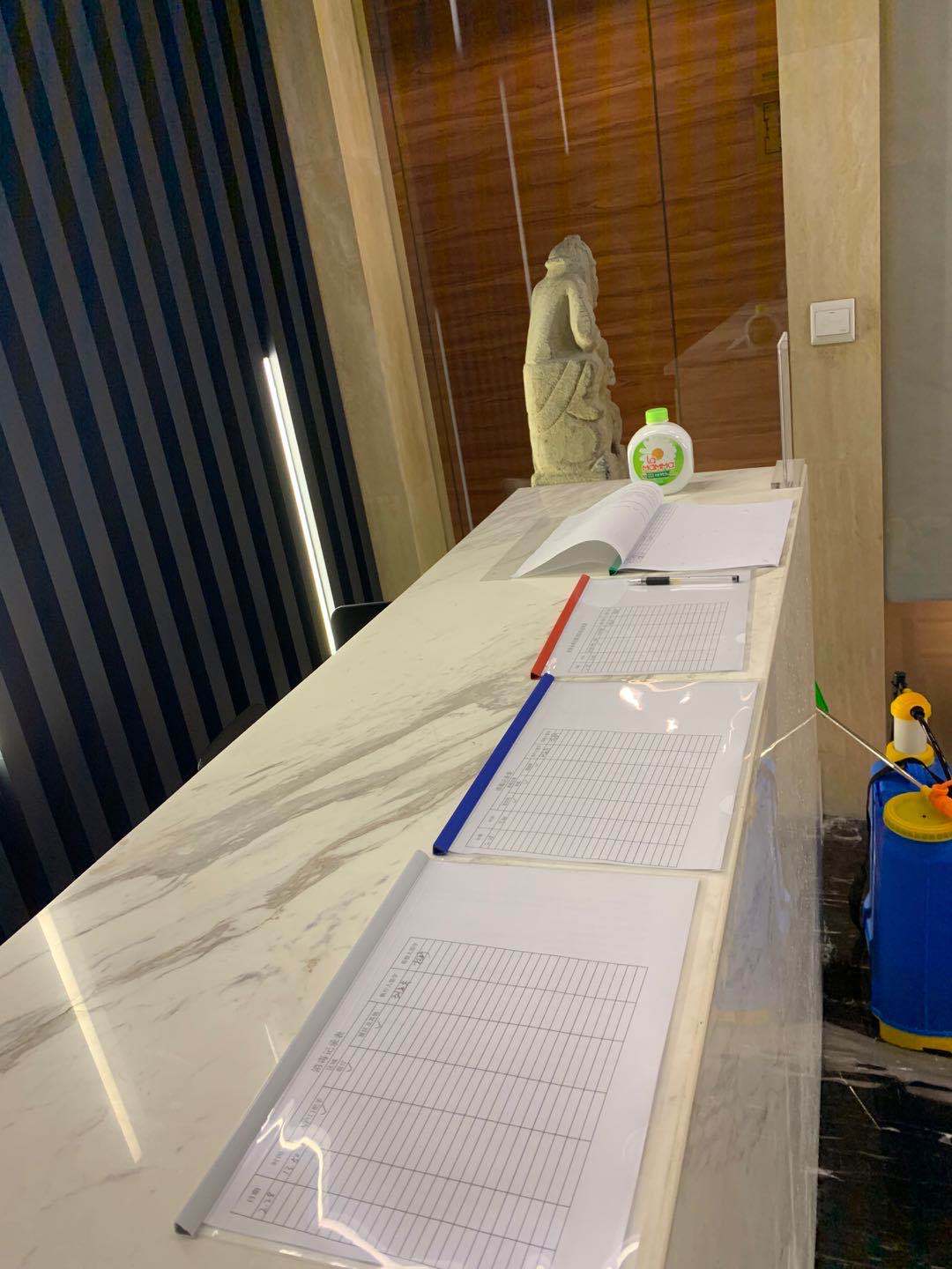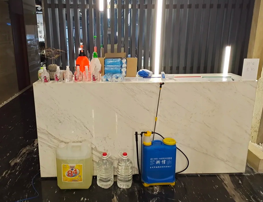 一大早,負(fù)責(zé)區(qū)域消毒工作的同事就提前完成了公共區(qū)域的消殺工作,努力做到全面消殺,不留死角。
