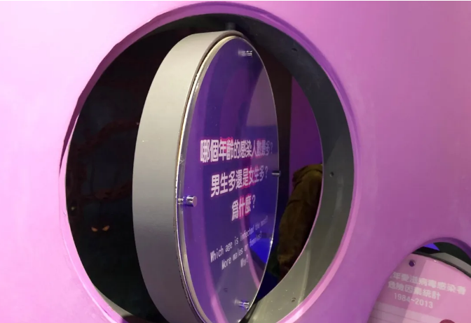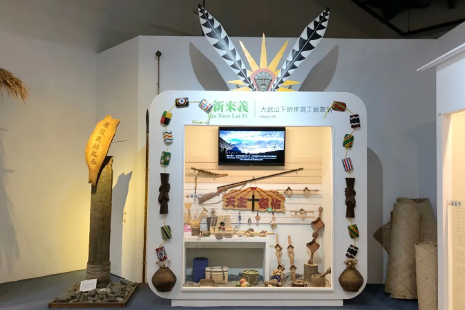 原住民展示區(qū):原部落的造型圖案與現(xiàn)代櫥窗相結(jié)合,原始風(fēng)味用了現(xiàn)代的手法進(jìn)行表現(xiàn),櫥窗使用半高的透明玻璃進(jìn)行隔斷,防止游客觸碰,并附有即時貼文字,進(jìn)行介紹,二維碼方便游客掃一掃更進(jìn)一步的詳細(xì)認(rèn)知了解,櫥窗內(nèi)側(cè)放置了一臺顯示器,滾動播放原始部落的視頻內(nèi)容