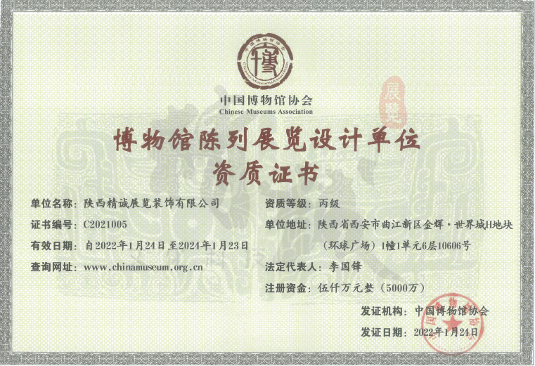 中國展覽館協(xié)會展覽工程企業(yè)一級水平證書