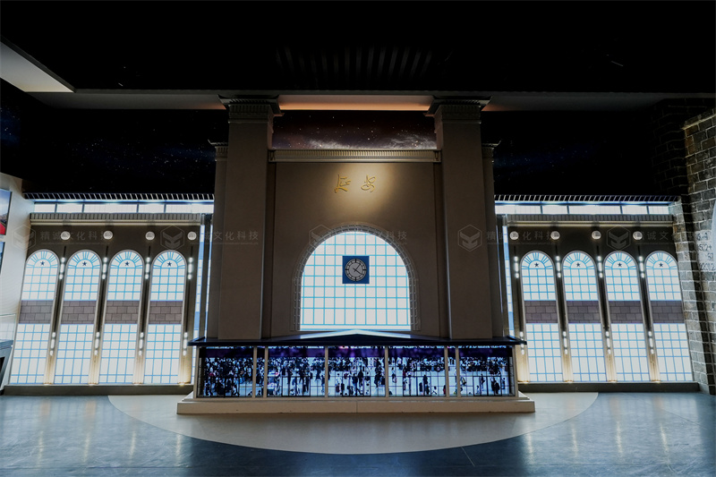 如延安火車(chē)站的展示,就采用場(chǎng)景還原結(jié)合數(shù)字多媒體的方式進(jìn)行了展現(xiàn),底部視頻生動(dòng)呈現(xiàn)了延安火車(chē)站1天24小時(shí)人流穿梭的畫(huà)面,帶給參觀者身臨其境的感受。