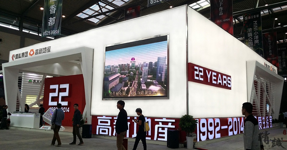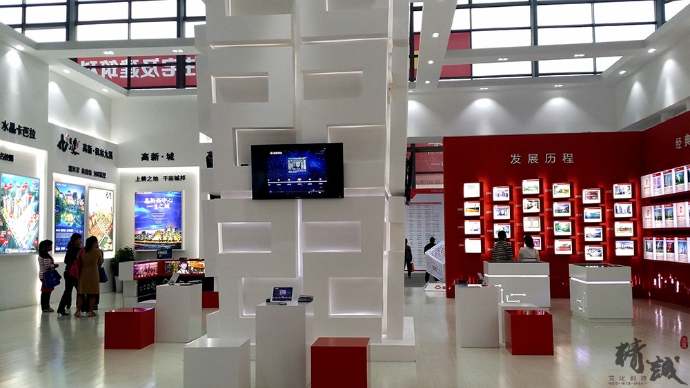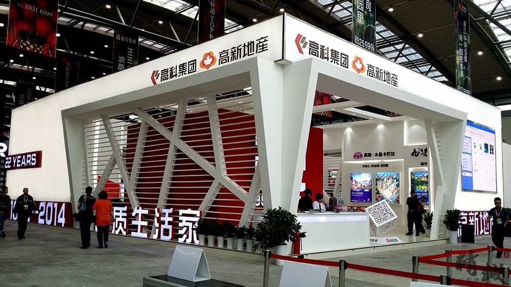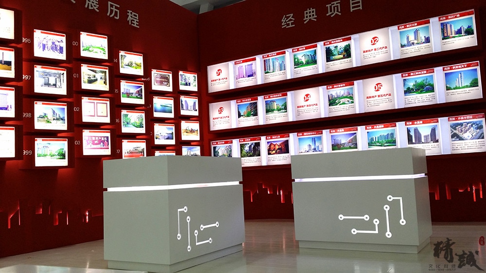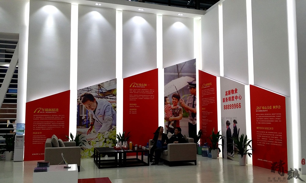 下圖是我公司(陜西精誠展覽裝飾有限公司)為高新地產(chǎn)設計的展覽效果圖,可供參考: