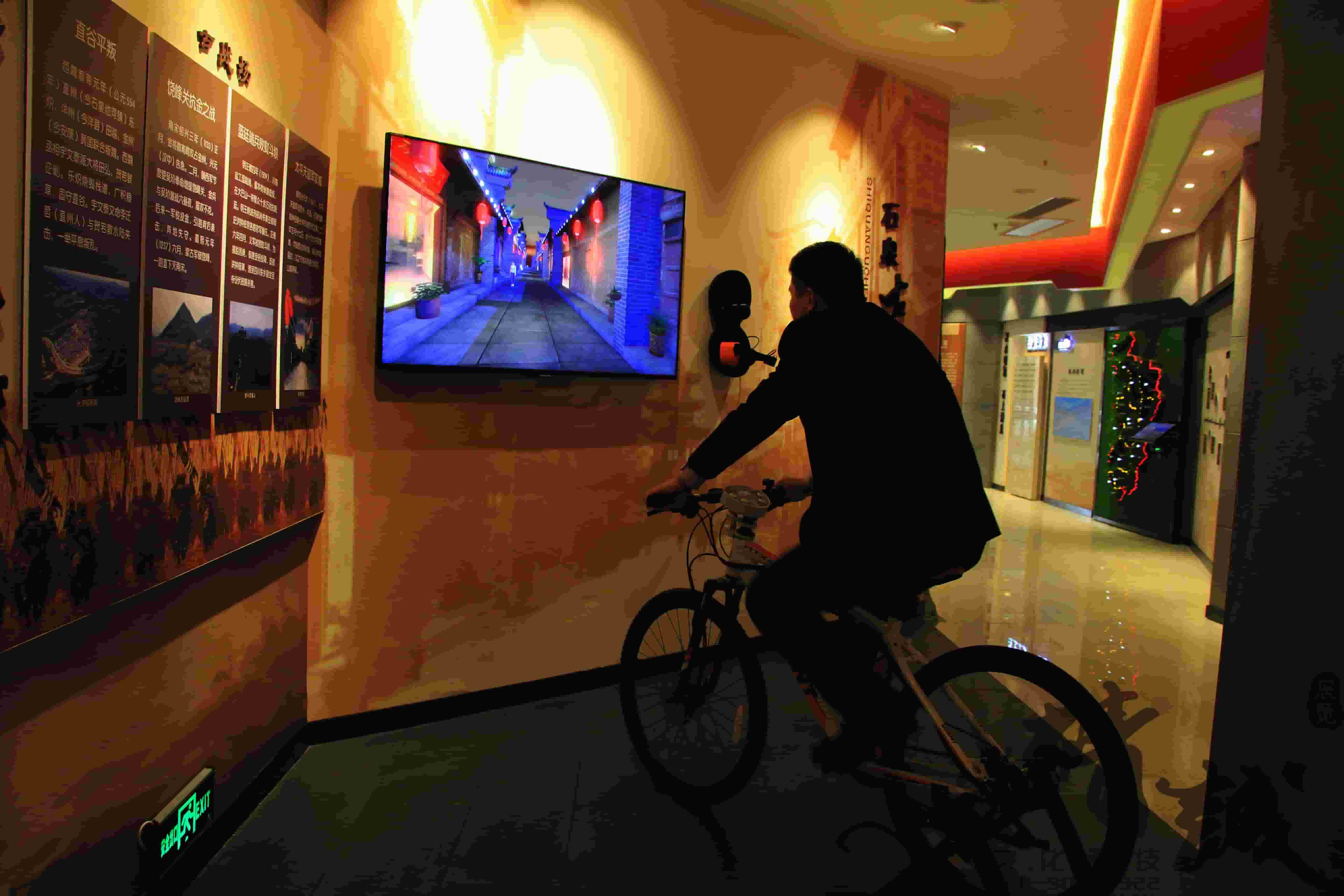 此外該展區(qū)采用單車虛擬漫游系統(tǒng),參觀者戴上VR眼鏡,通過踩動(dòng)單車石泉明清古城就可能夠直接展現(xiàn)在觀者面前,全方位沉浸式還原古城夜景,盡情領(lǐng)略千年古城之美。