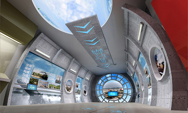軍史館的設(shè)計(jì)遵循現(xiàn)代主義簡(jiǎn)約設(shè)計(jì)風(fēng)格,嚴(yán)謹(jǐn)細(xì)膩,簡(jiǎn)約而不簡(jiǎn)單,豐富而不繁瑣,滲透出軍隊(duì)的莊嚴(yán),從形式上更新普遍 “畫(huà)廊式”展廳的基本展陳風(fēng)格。